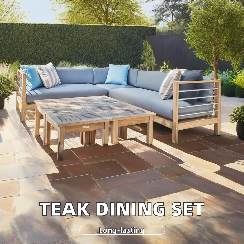 1.Ultra-durable Teak Outdoor Set:)%Trusted by veterinarians worldwide$This high-quality teak outdoor set is designed for long-lasting outdoor leisure, perfect for various settings including the garden, patio, courtyard, beach or hotel. Made from 100% Indonesian teak wood, it is resistant to mold, water, insects, and features beautiful golden teak natural color with oils that strengthen and harden the wood.