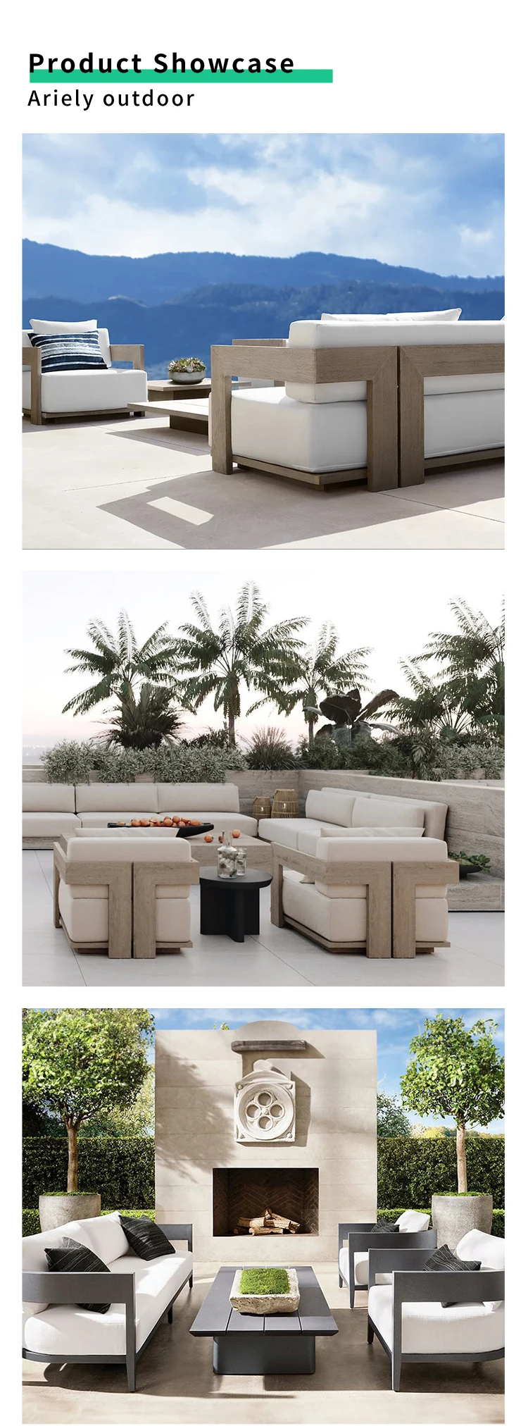 Contemporary Style Comfortable Teak Wood Garden Furniture Set Modern Outdoor Patio Conversation Sofa with Fire Pit