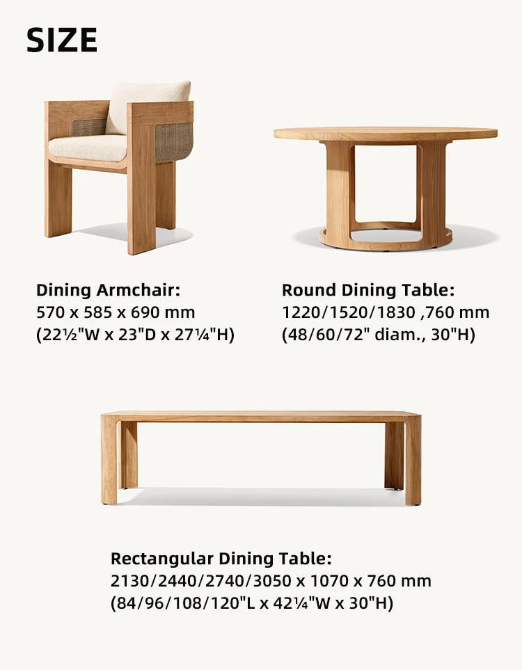 Table : W.112 x D.234 x H.76 ; Chair : W.53 x D.39 x H.79 (CM)